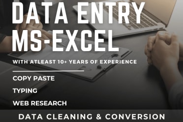 With more than 5 years of experience in Data Entry and Ms.Excel. I will do Data entry, Data mining, Data cleansing, Ms.Excel work.