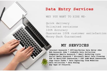 You are at the right place. I will do Professionally Any type of Data entry work within 24 hours for your business and personal use.