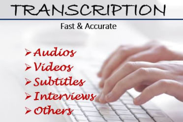 I am sivaranjani, an Engineer and a transcriptionist. With YEARS of experience in the Transcription on different platforms. I am a highly motivated and efficient person with expertise in transcription, proof reading, editing, email copy and many other related skills. I will work with you until you are truly satisfied. Feel free to reach out with any questions. I look forward to speaking with you.