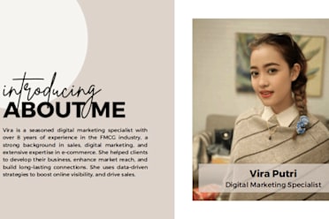 All Services Sales & Marketing general marketing Virtual Assistant $10/hr · Starting at $100 Vira has over 8 years of experience in the FMCG, with a solid background in sales, digital marketing, and eCommerce. Proficient in SEO, social media marketing, and email marketing, she uses data-driven strategies to boost online visibility, engage customers, and drive sales.Savira excels at streamlining marketing efforts to meet strategic goals and crafts targeted campaigns based on a deep understanding of consumer behavior, fostering brand loyalty. Her analytical skills ensure continuous optimization for maximum ROI.Passionate about the latest digital trends and technologies, Savira is committed to delivering impactful results and driving sustained success in every project. About $10/hr · Ongoing Download Resume Vira has over 8 years of experience in the FMCG, with a solid background in sales, digital marketing, and eCommerce. Proficient in SEO, social media marketing, and email marketing, she uses data-driven strategies to boost online visibility, engage customers, and drive sales.Savira excels at streamlining marketing efforts to meet strategic goals and crafts targeted campaigns based on a deep understanding of consumer behavior, fostering brand loyalty. Her analytical skills ensure continuous optimization for maximum ROI.Passionate about the latest digital trends and technologies, Savira is committed to delivering impactful results and driving sustained success in every project. Skills & Expertise Administrative AssistantGrowth MarketingOmnichannel MarketingSales and MarketingStrategic Marketing 1 Reviews ClueGroup says, Great start Vira! Let's connect each day to ensure all the tasks are moving in the right direction. Thanks again! for Virtual Assistant Need! on Mar 26, 2025 Browse Similar Freelance Experts Growth MarketersStrategic Marketing ConsultantsAdministrative Assistant